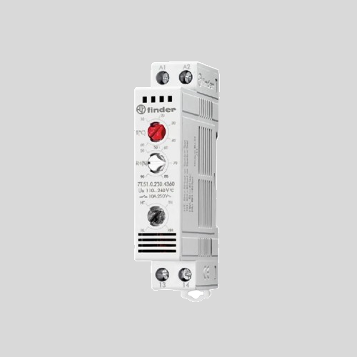Higro-termostato de painel tipo 7T.51 para controle de temperatura e umidade, com tensão nominal de 110… 240 V AC / DC Compacto (17,5 mm de largura), controle eletrônico e 4 funções.