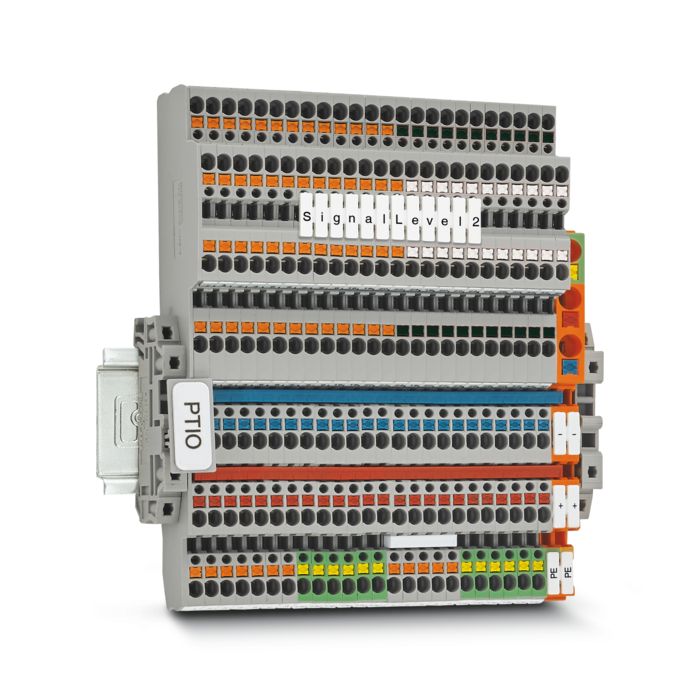 Os bornes de sensor/atuador PTIO estão perfeitamente adaptados ao cabeamento de controladores modernos de máquinas graças ao seu formato compacto. Com os bornes de sensor/atuador, você consegue cabear iniciadores e atuadores bipolares em uma largura de borne de apenas 3,5 mm. Além disso, as réguas de bornes permitem o cabeamento de sensores e atuadores de 3 ou 4 condutores.